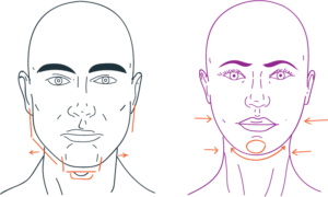 • Feminización del tercio inferior del rostro: en esta sección del rostro buscamos sobre todo achicar el mentón, que en los hombres es más ancho, y suavizar la forma cuadrada de la mandíbula típica masculina para darle un aspecto más redondeado. Según las características de cada paciente podemos añadir además una elevación del labio superior o LipLift y una reducción de la nuez de Adán. Esta última intervención consiste en un limado del cartílago tiroides para reducir este resalte. La cirugía se realiza bajo anestesia general a través de la boca, por lo que no se efectúa ninguna incisión en la piel. Evitamos así posibles cicatrices en esta zona de la cara. Para cortar los huesos usamos el motor de ultrasonido, que es la técnica más avanzada y evita daños en los tejidos blandos de alrededor.