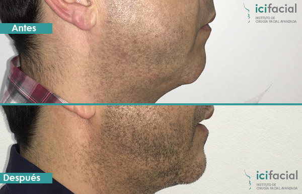 - Aumento de la barbilla con un implante de silicona o bien proyectando el hueso de la barbilla. En Icifacial realizamos ambas intervenciones por dentro de boca de manera que no dejamos cicatrices. Los puntos dentro de boca son reabsorbibles.